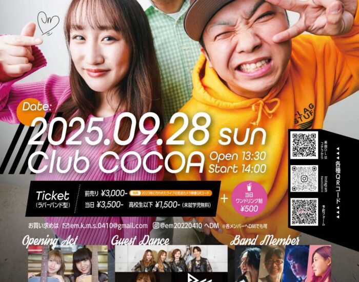 2025年9月28日(日) em… One Man Live vol.4 〜君に3択クイズ〜 open 13:00 start 14:00 [Opening Act] すもあ [Guest Dance] variou […]