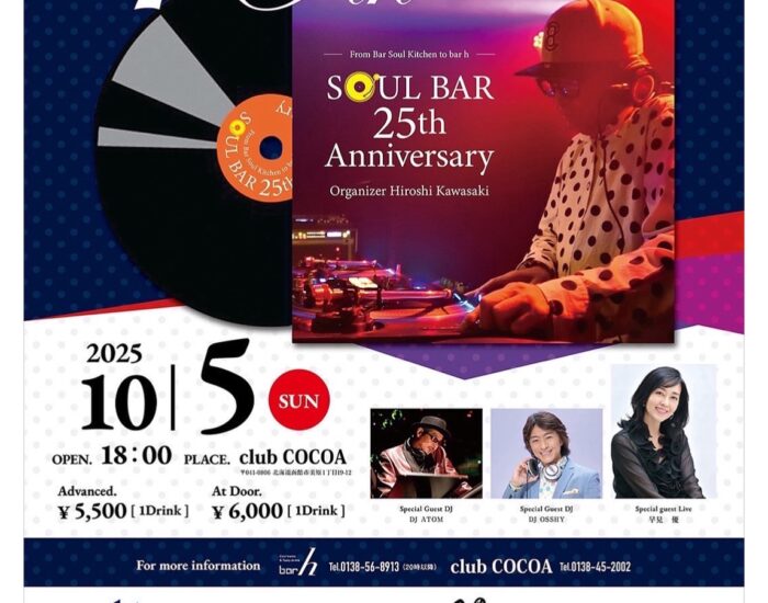 2025年10月5日(日) DJ HIROSHI 40th Anniversary SOUL BAR 25th Anniversary -From Bar Soul Kichen to bar h- Organizer […]