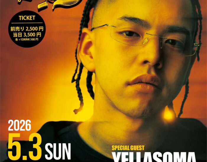 2026年5月3日(日) NOVA OG vol.9 open 22:00 [Special Guest] YELLASOMA [Live] Fucking RIKU / Young Loy / Lilice Kille […]