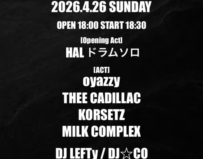 2026年4月26日(日) club COCOA Last Live show vol.2 open 18:00 start 18:30 [Opening Act] HAL ドラムソロ [Act] oyazzy THEE […]