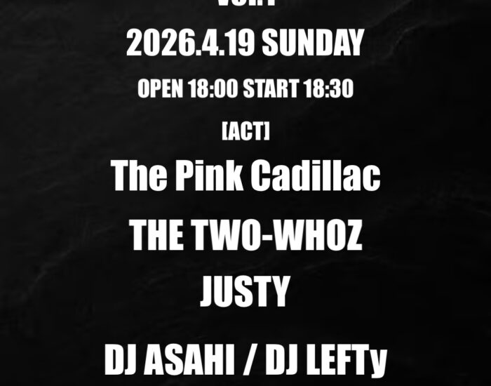 2026年4月19日(日) club COCOA Last Live Show vol.1 open 18:00 start 18:30 [Act] The Pink Cadillac THE TWO-WHOZ JUST […]