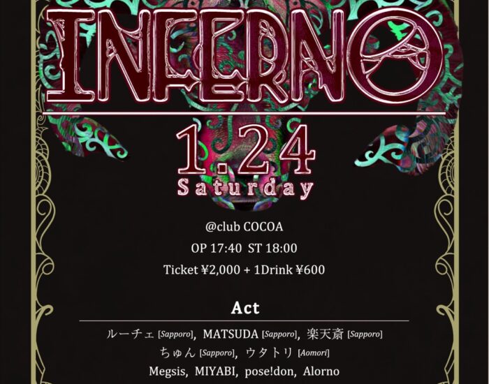 2026年1月24日(土) INFERNO open 17:40 start 18:00 [Act] ルーチェ from. Sapporo MATSUDA from. Sapporo ちゅん from. Sapporo […]