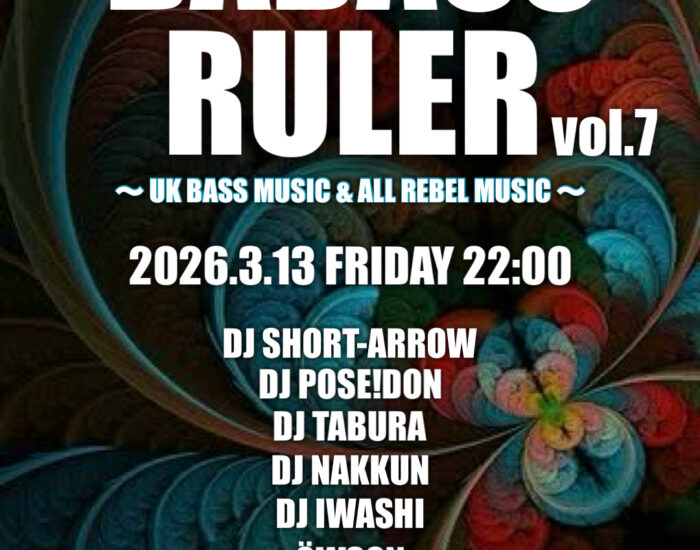 • 2026年3月13日(金) BADASS RULER vol.7 (UK BASS MUSIC & ALL REBEL MUSIC)