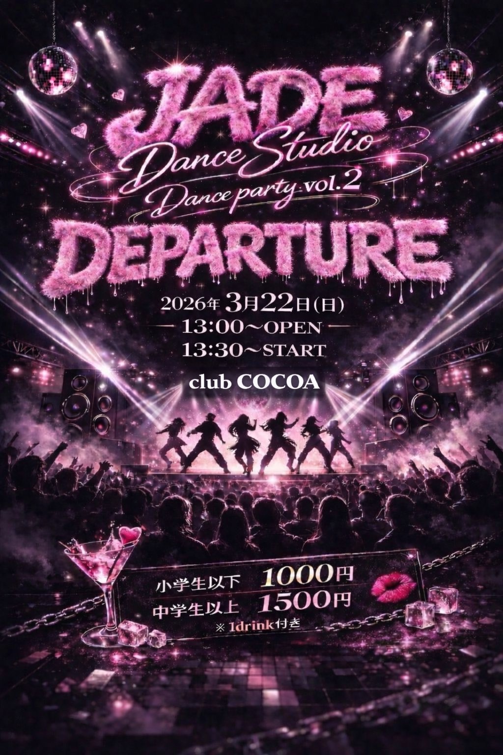 小学生以下 ¥1000 中学生以上 ¥1500 (1ドリンク付)